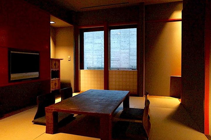 もうひと部屋、畳敷きの和室があります。漆塗りの戸棚、柿渋のテーブル、越前和紙のランプなど、用意されている調度品のひとつひとつが選び抜かれたもので、気分を変えて和室のよさが感じられる空間です。