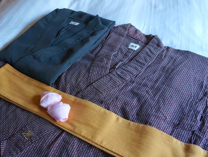 部屋着としてオリジナルの浴衣が用意されています。一般的な浴衣よりも厚手な綿100%の浴衣は、一枚で着ても透けたり、体のラインが出たりしにくくて、よりリラックスできます。半幅帯だけでなく腰紐も用意されているから、着崩れしにくく着ることができます。