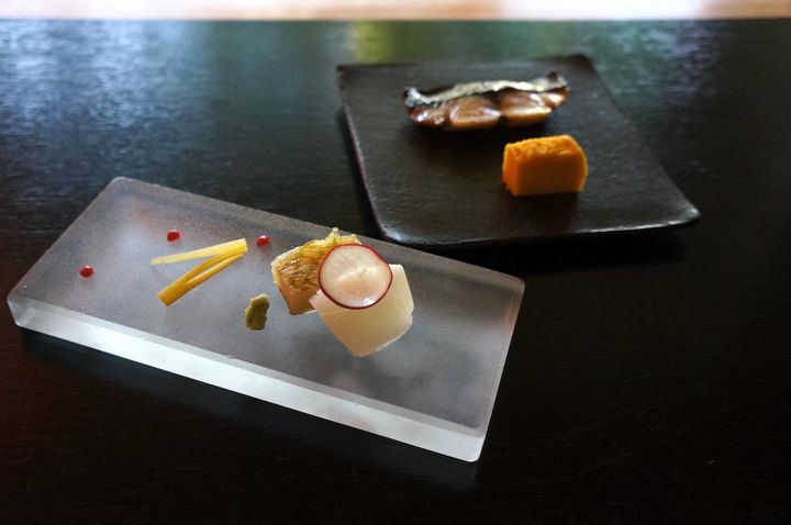 野菜の炊き合わせや豆腐などの先付けのほか、「富山湾のアオリイカとサワラの昆布締」や「サワラの西京漬」など、どの料理も仕込みや味付けが丁寧に行われていて、料理人の細かな仕事が感じられます。