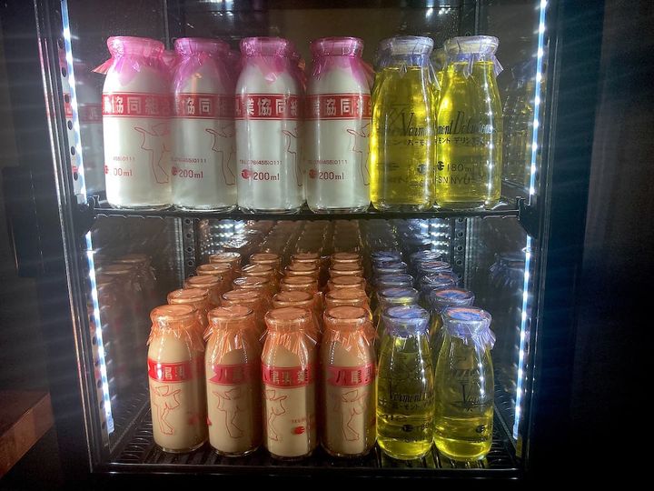 大浴場前の湯上りスペースには、9月に行われる「おわら風の盆」で有名な八尾町の牛乳とコーヒー牛乳、地元で長く親しまれている「バーモンド・デリシャス」というリンゴ風味のジュースが用意されています。どれも飲んでみたくて、困っちゃいます。