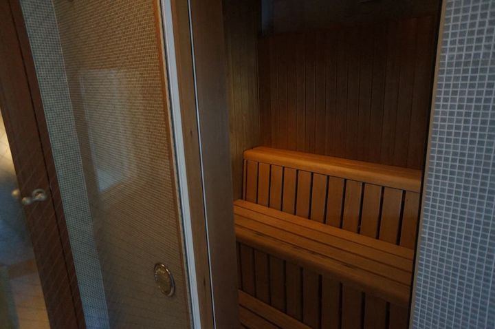 この客室のお風呂はドライサウナも付いています! サウナにも窓が付いていて、ジャクジー越しに外の景色が眺められるので、心地よい外の光を感じながらサウナに入ると爽快感が倍増します。