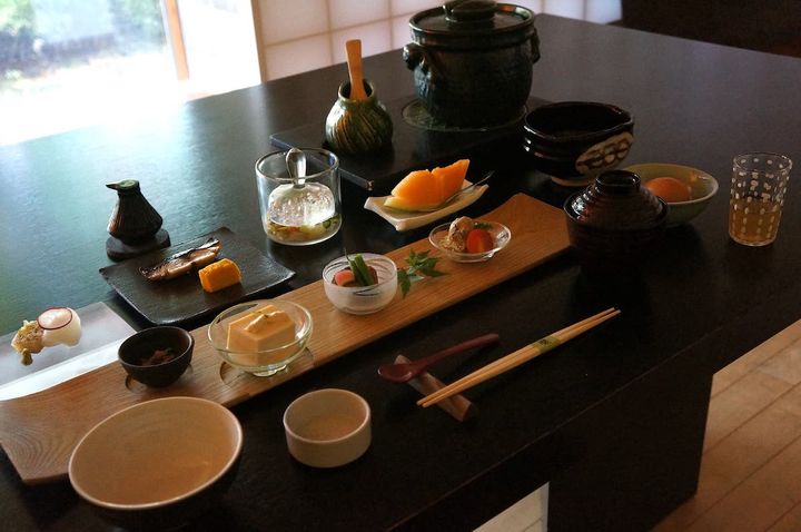 土鍋の蓋を開けると漂う炊きたてのご飯の香りに食欲がそそられます。お米は川を挟んだ向かいにある集落で合鴨農法によって育てられた有機棚田米だそう。粒がひとつひとつ立ったしっかりとした味わいのお米です。