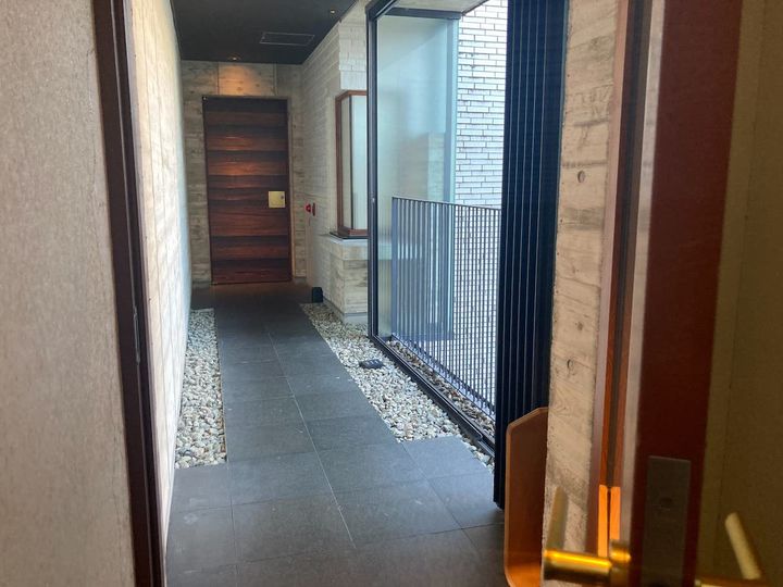 宿泊する213号室「想紅(おもいくれない)」のドアを開けると、さらにアプローチが続き、その先にドアが見えます。