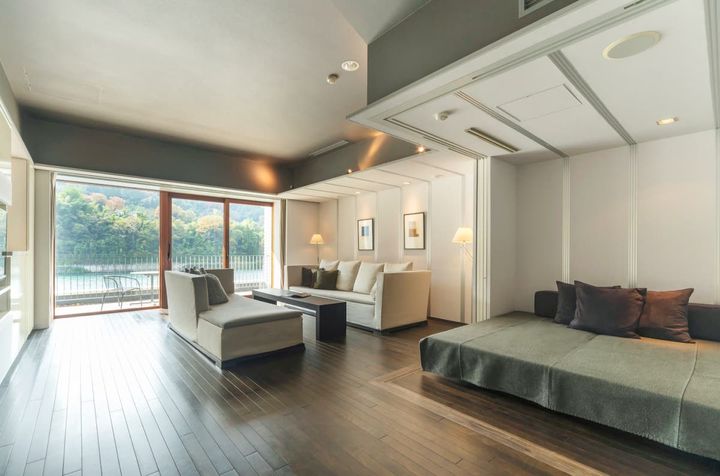 次は客室のご紹介です。客室はスイート、デラックス、スタンダードの3種類で25室あり、すべて造りが異なるそう。訪れるたびに、違う客室に泊まってみたくなります。今回宿泊の客室は、新館ラグジュアリースイート1泊2食付5万9000円~です。