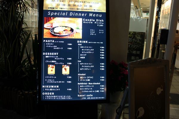 夜の特別メニューのキャンドルディッシュやパスタ、ドリンク、デザートもあるので、カフェでゆっくり過ごすこともできます。毎年混み合うようなので、事前予約がおすすめです(カフェ直通 022‐346-0831)。