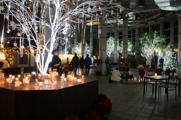 たくさんのキャンドル(本物!)とクリスマスツリーやイルミネーション、