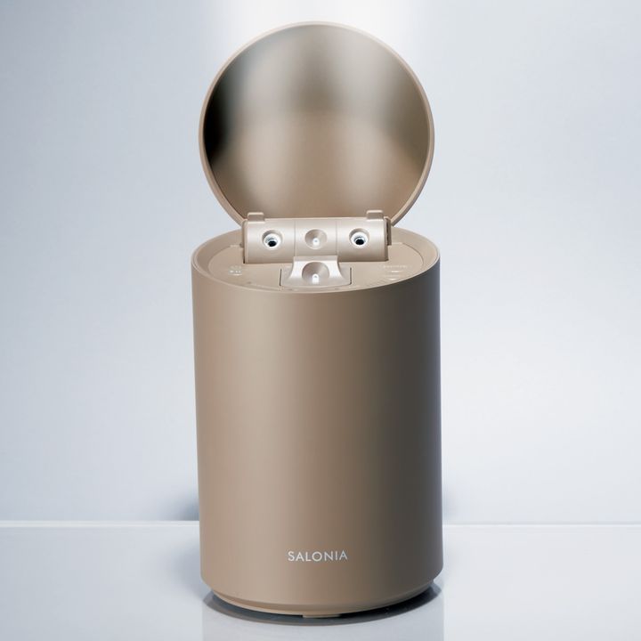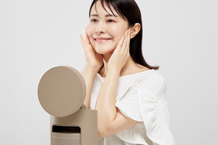 2つの吹出口から出る温スチームで、肌温度をスキンケアに適した約40℃に整えてくれるパワフルスチーマー。化粧水を毛穴よりも細かく噴射する化粧水ミスト化機能を使うと、化粧水を手で塗布した時と比較して、肌の水分量が約200%にアップするというエビデンスもあるので、心強い。¥27,500(I-ne)