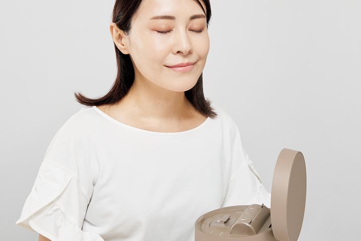 ②喉や鼻の調子が悪い時にはスチームを稼働。深く吸い込むことでケアできます。抗炎症作用・殺菌作用のあるハッカ油を含ませたコットンを蒸気口に近づけると効果アップ。