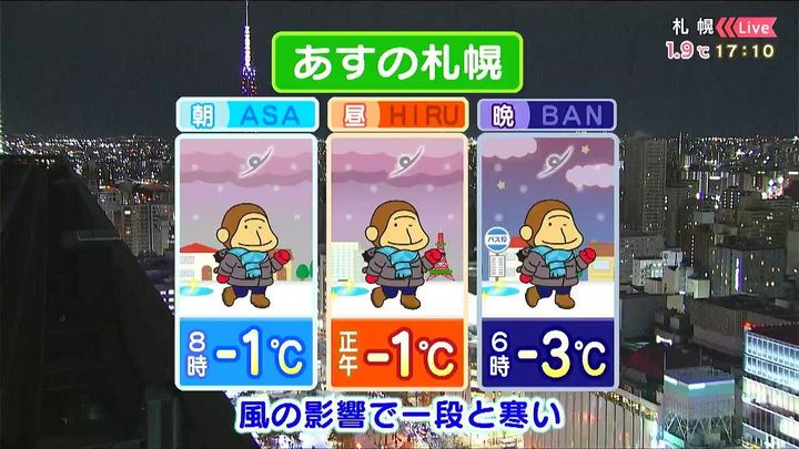 あす11日(水)の札幌です!朝昼晩の天気をもんすけでお伝えします!