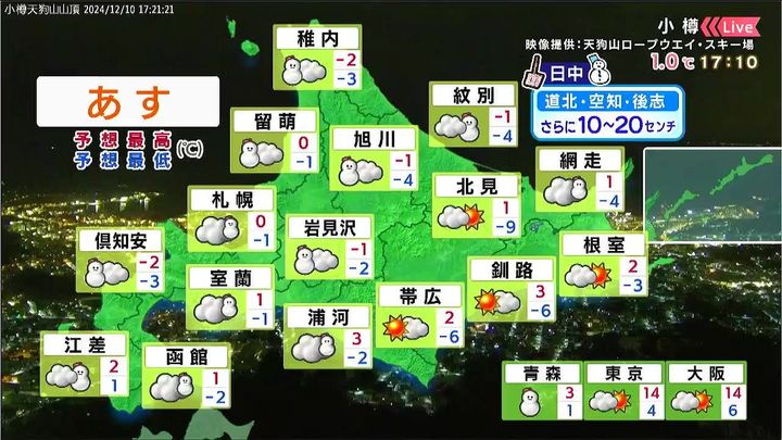【冬将軍の到来】あすの朝は雪かきが必要かも…? 北海道の週間天気予報 2024年12月10日更新