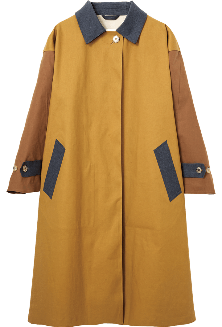 かなりハリのある素材で、ゆるやかなAラインのシルエットが崩れずキレイに着用できる。マッキントッシュらしい、王道ブリティッシュデザインが素敵。