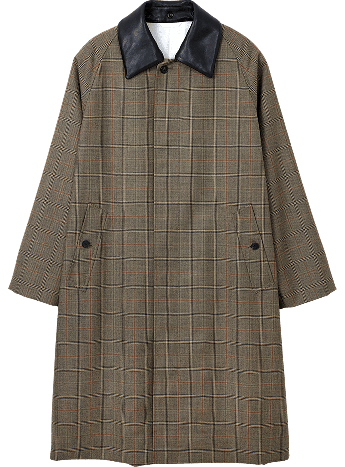 変わり素材のレザー襟、チェック柄、中途半端な丈と、まさにグランパコアの代表選手のようなコチラ。写真のようにヴィンテージムードで着こなすもよし、インにキレイめのボウタイシャツなどを合わせても素敵。