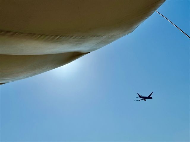 とても天気がよい日だったので、遠くまできれいに見渡せて抜群の解放感。おそるおそる身体の向きも変えつつ、さまざまな角度から景色を楽しみました。飛行機が飛んでいく様子も見えました。