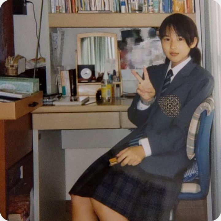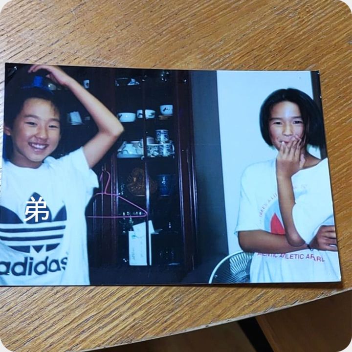 14歳、最高潮に日に焼けていた頃の私。実家の母に急遽送ってもらいました。外で遊びまくっている小学生の弟よりはるかに黒いです。
