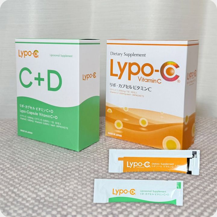 Lypo-C Vitamin CとLypo-C Vitamin C+D。一緒に飲むといいと勧められたので、美容皮膚科をお休みしてお金が浮いている分、ダブルで常飲しています。