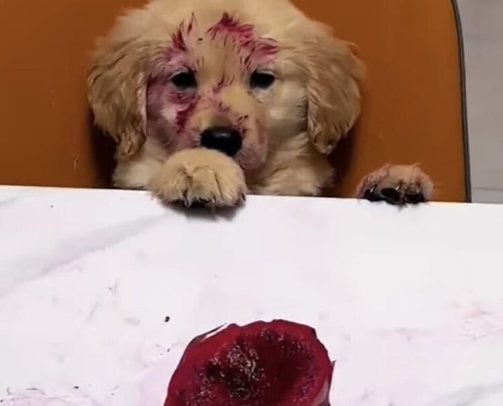 子犬「いたずら楽しかったです♪」 お顔が真っ赤!