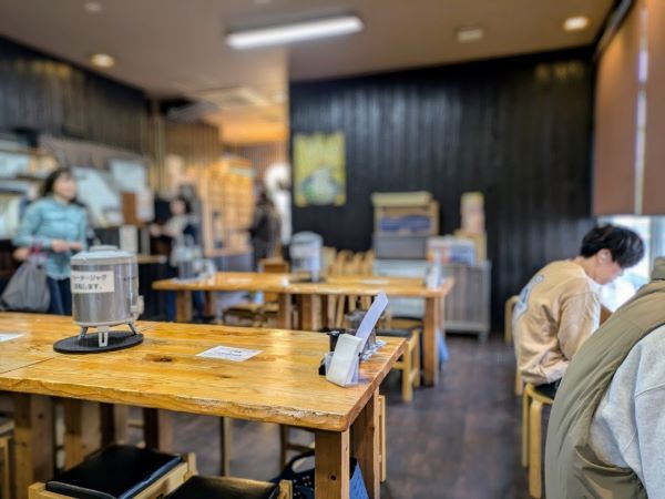 先日お昼過ぎにチラッと覗いた時は、福岡大学の学生さんらしきお客さんでほぼ満席で、まるで学食のような賑わいでした。入り口にもカウンター席があり、奥は大きめのテーブル席と窓際のカウンター席があり、広々とした店内です。