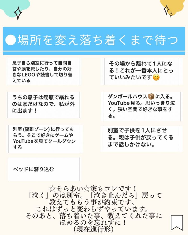 3. 発達障害児母がまとめた「かんしゃくのクールダウン方法」子どもに合わせた実例を複数紹介