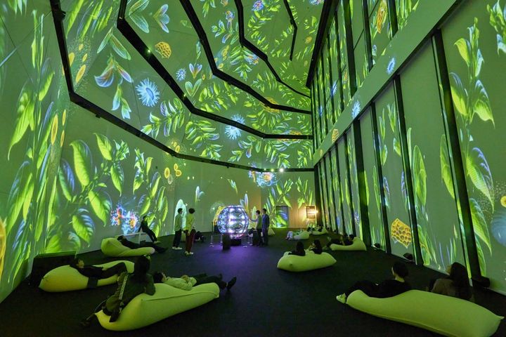 天球型ドームを有する「ギャラリーA」では、プロジェクションマッピングと立体音響を使用して、自然の音や、自然から着想を得た音楽への没入体験を展開。大地の風景や音を全身で体感することができる。