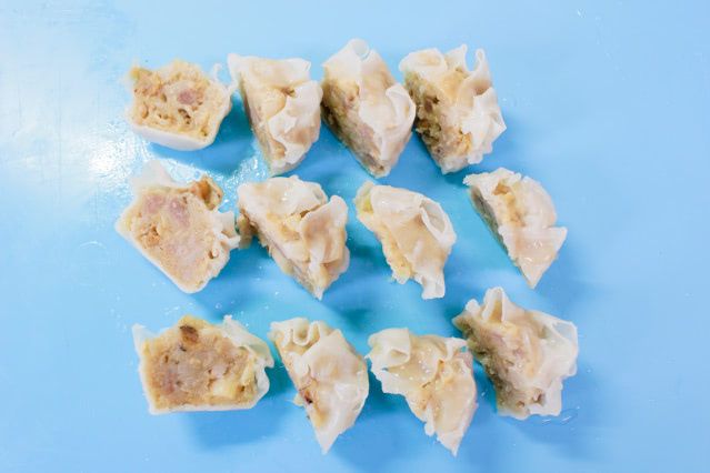 温まったシュウマイを半分にカット。「ザ★®シュウマイ」は大ぶりなので、半分に切ってもごろっとしています♪