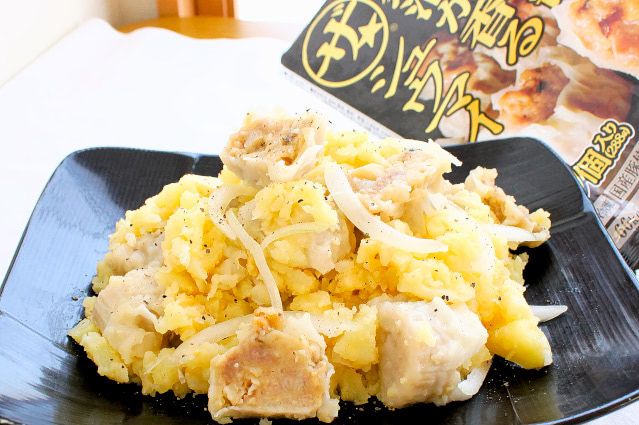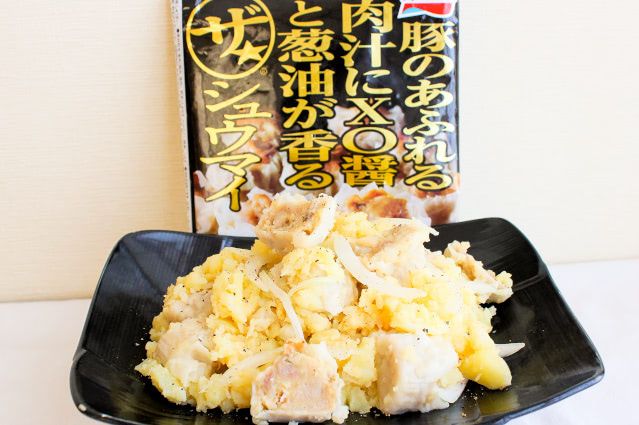 大人気の「ザ★®シュウマイ」を使った「やみつきのシュウマイポテサラ」は、潰したじゃがいもにレンチン加熱したシュウマイを合わせるだけの、お手軽ポテトサラダでした。