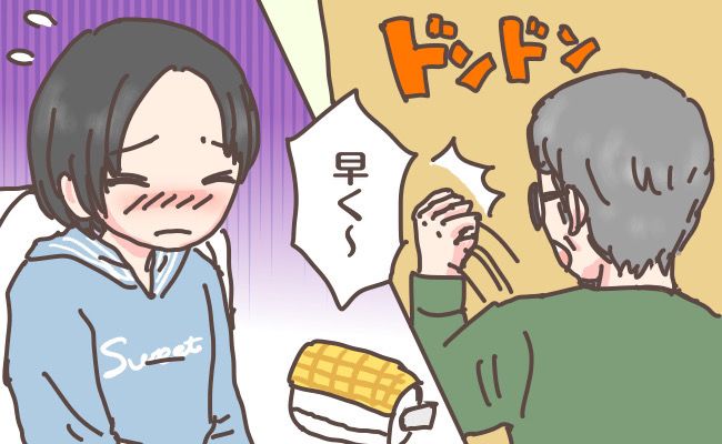 すると、父がトイレの扉をどんどん叩きながら「早く出てくれ!」と何度も言ってくるのです。トイレは2階にもあるため「そっちに行って」と促したのですが、父は「階段を上るのが面倒だから無理」だそう。私は「そんなことで……」と衝撃を受けながらも、急いでトイレから出ました。