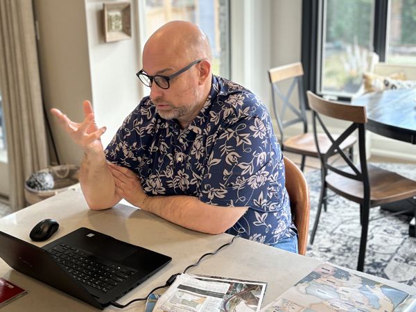 日本旅行を予定しているクライアントと打ち合わせ中のポールさん