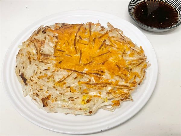 切らずにそのまま食べましたが、一口大に切っておくとチヂミのように食べやすそう。