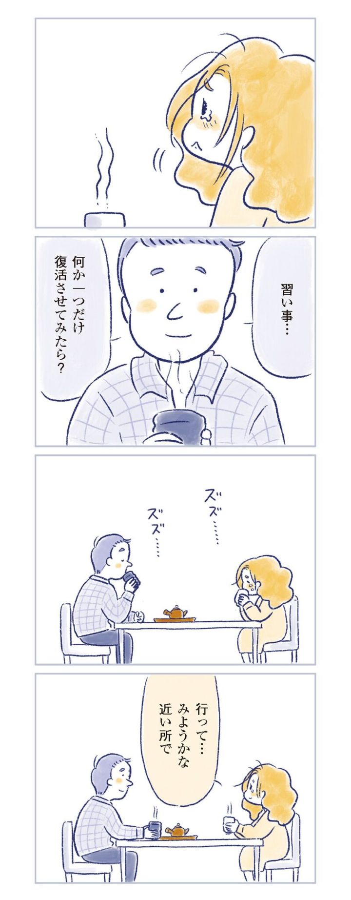 婦人科を受診して更年期としっかり向かうようになったしょうこさんですが、思うように快方せずいらだちや不安を抱えるように。しかし、理解のあるご主人にやさしく背中を押されて、少しずつ歩き出しました。