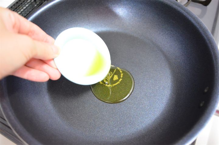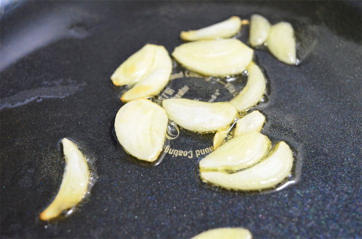 にんにくは弱火でじっくり香りを出しましょう。
