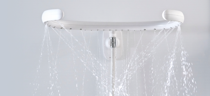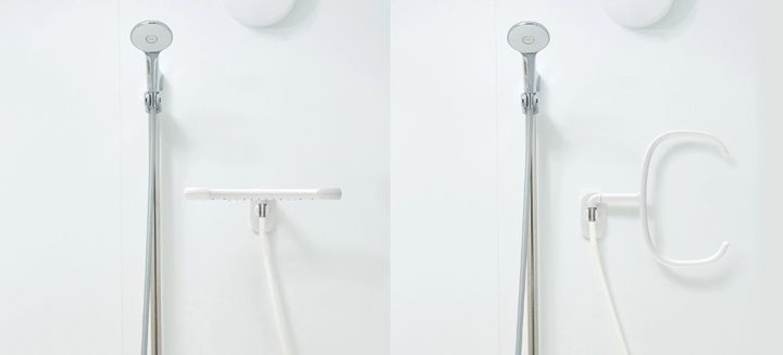 気になる収納ですが、U字ヘッドのシャワーヘッドは回転してたたむことができるので、浴び終わった後も邪魔にはなりません。曲面が滑らかなデザインは身体をやさしく包み込み、スペースの限られた浴室空間にもしっかりと調和します。