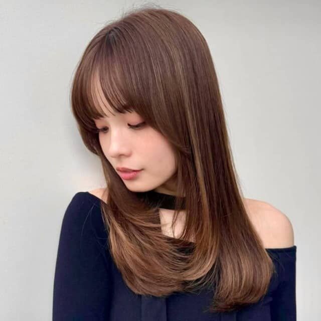 サイドの髪を気持ち長めに残すのもおすすめ。それだけで顔のラインを自然にカバーできるので、小顔効果と若見え効果を期待できます。また、前髪を気持ち長めにして透け感を出すのもポイントです。