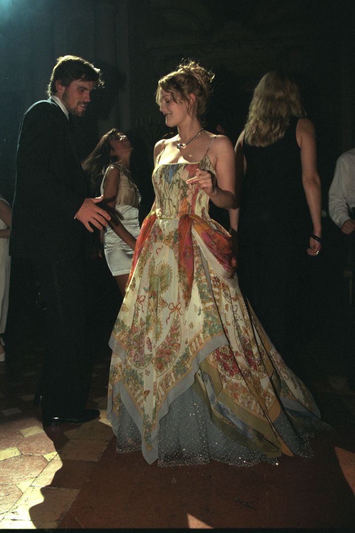 1998年、当時23歳のドリュー・バリモアは、グリム童話の『シンデレラ』を現代版にアレンジした映画『エバー・アフター』に主演し、プロモーション活動の一環として、ローマのコルシーニ宮殿で開催されたガラに出席した。会場と作品の世界観に合わせてか、彼女はこのガラにおとぎ話に出てくるようなコルセットガウンで登場。裾に向かってふんわりと広がる1着は、スカート部分が何層にも重なったチュールと手染めのシルクスカーフで作られていて、後に「Fifty Scarves Dress(50枚のスカーフで作られたドレス)」として親しまれるようになった。