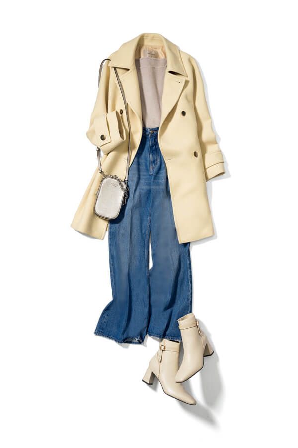 コート¥58,300/ジャスグリッティー ニット[カーディガンとセット]¥18,700/マイストラーダ デニムパンツ(VIS別注)¥10,890/CIMARRON×VIS(VIS) バッグ¥35,200/ケイト・スペード ニューヨーク(ケイト・スペード カスタマーサービス) ブーツ¥14,960/RANDA