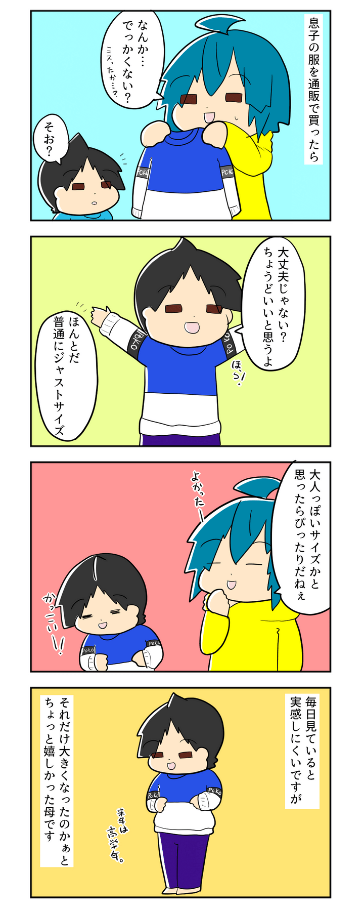 通販でサイズミス!?失敗かとおもいきやジャストサイズで息子の成長を感じた母