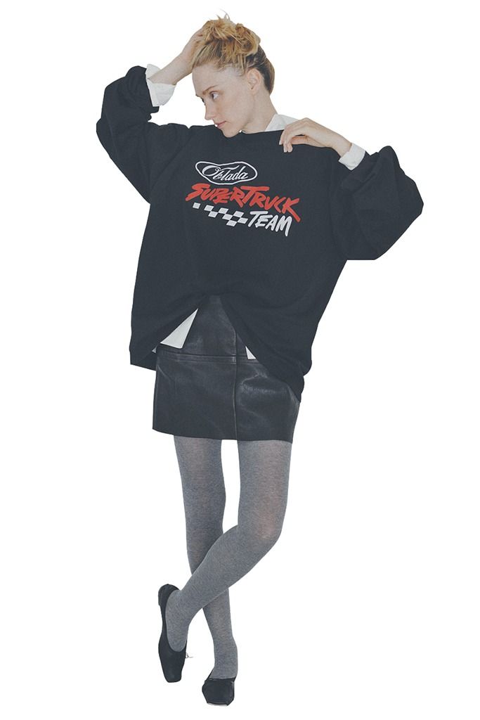 スエットでよくやる組み合わせをロンTでも。たっぷりとしたシルエットでも、ミニボトムならすっきり。+タイツで肌感を調整。 白シャツ/KUNIKO_NEMOTO×NAVE(NAVE) 黒ロンT/Oblada(シンチ) 黒レザーミニスカート/リトコフスカ(アルアバイル)