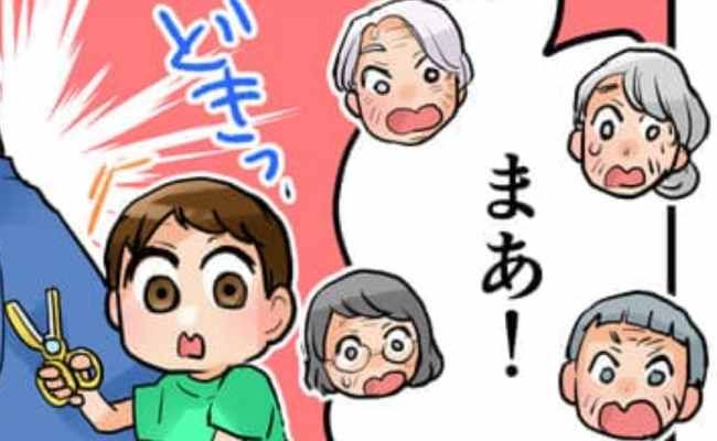 息子が3歳のころ、私は子育てサークルの役員をしていました。毎月、サークル活動の支援をしてくださるおばあちゃんたちと手作りおもちゃを製作。息子も子ども用のハサミを使って、紙やひもなどをチョキチョキしたがるので、「安全に気をつけてね!」と声をかけていました。そんなときに、背後から「チョキ!」と嫌な音がして……。