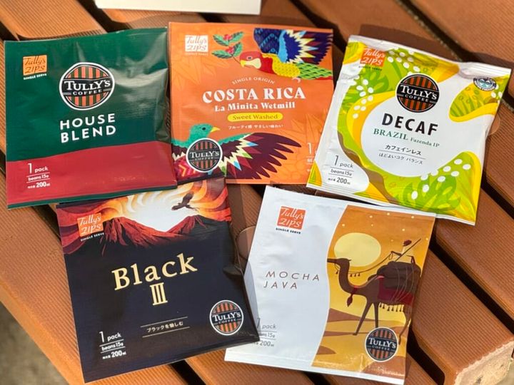 ハウスブレンド、モカジャバ、ブラック スリー、デカフェ ブラジルIP農園、コスタリカ ラ ミニータ スイートウォッシュド、タリーズの定番ビーンズ5種類がシングルサーブに。収納時もかさばらずまとまって置いておけるのが嬉しい。