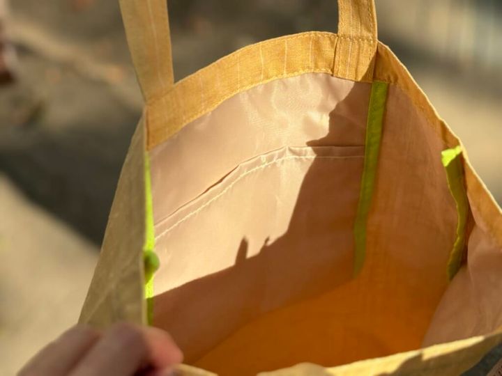 手持ちでも肩かけでもOK、2WAYで使用できます。マチはさほどありませんが、小さくてもあると嬉しい内ポケット付き! A4サイズの資料やノートPCはしっかり入りますよ。