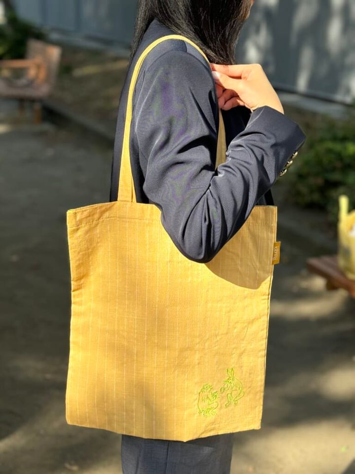 ・鳥獣戯画クルクルトートバッグ(ベージュストライプorイエローストライプ)