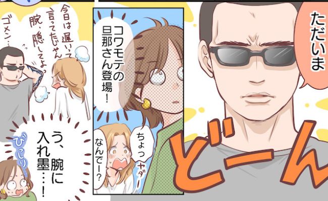 最近、次男の保育園を通じて初めてできたママ友。ママ友のお宅に遊びに行くと、仕事で遅いはずの旦那さんがいきなり帰宅! 旦那さんの両腕には、びっしりと刺青が入っています。コワモテの旦那さんに私が圧倒されていると……!?