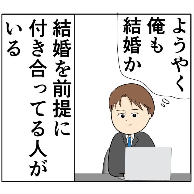 (ようやく俺も結婚か)と嬉しそうにしている男性社員。