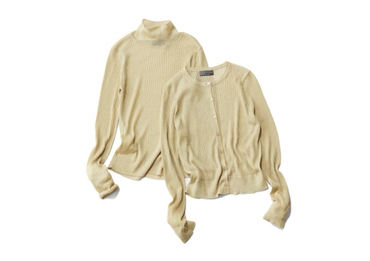 ラメニットカーディガン¥15,950、ラメニット¥14,960/ともにアンクレイヴ スタンダード(フィルム)