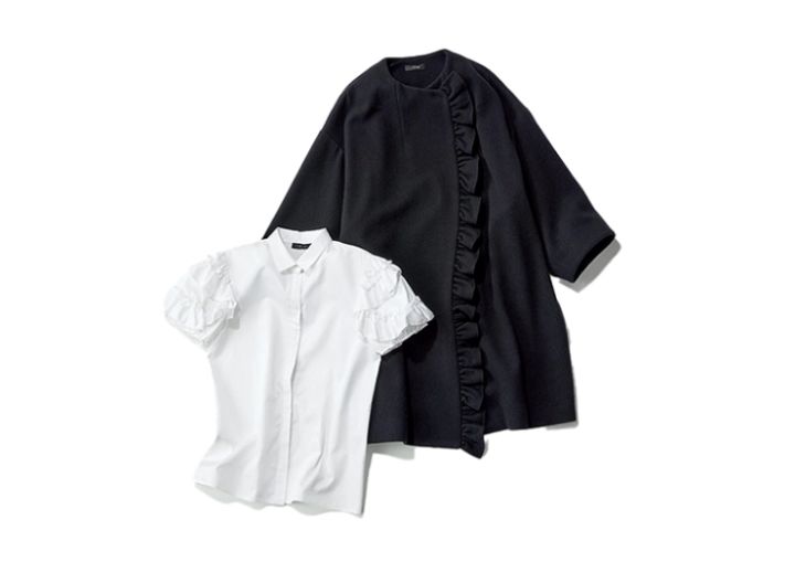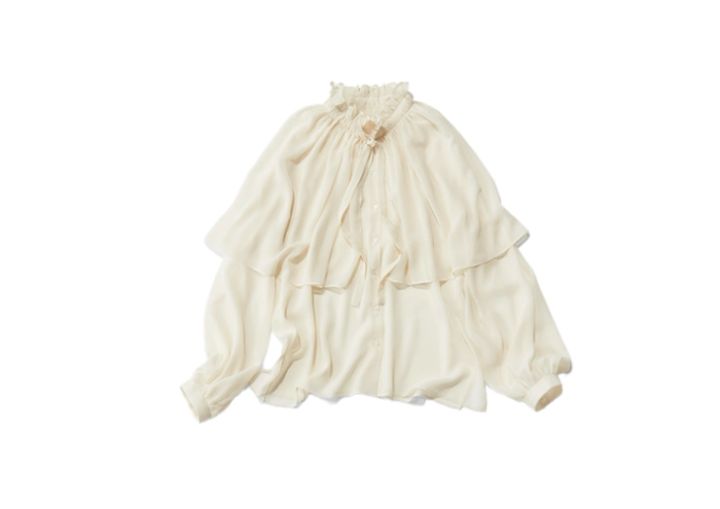 ブラウス¥68,200、フロントフリルコート¥137,500/ともにYOKO CHAN