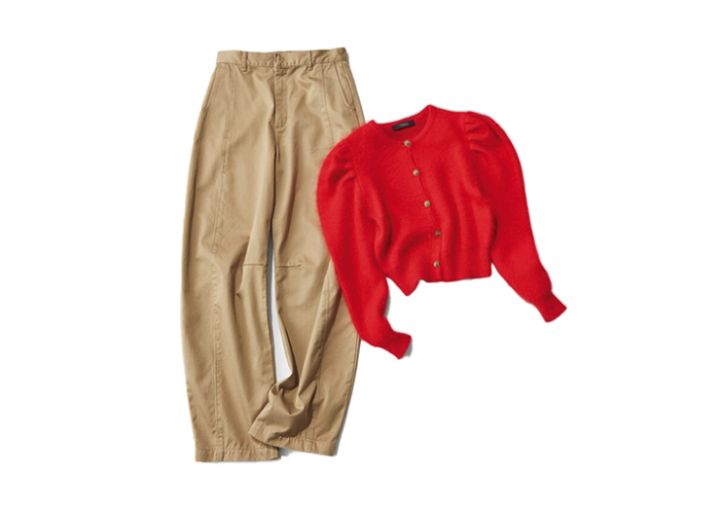 アンゴラニットカーディガン¥47,300/コルコバード、チノパンツ¥35,200/ダブルスタンダードクロージング(ともにフィルム)