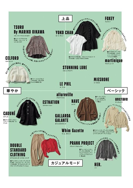 デイリー使いしやすくて、PLUS世代に必須の貫録もあって。そんな頼れるブランド群をチャートで解説。それぞれのベクトルを知って、自分に刺さるブランド見つけましょ!