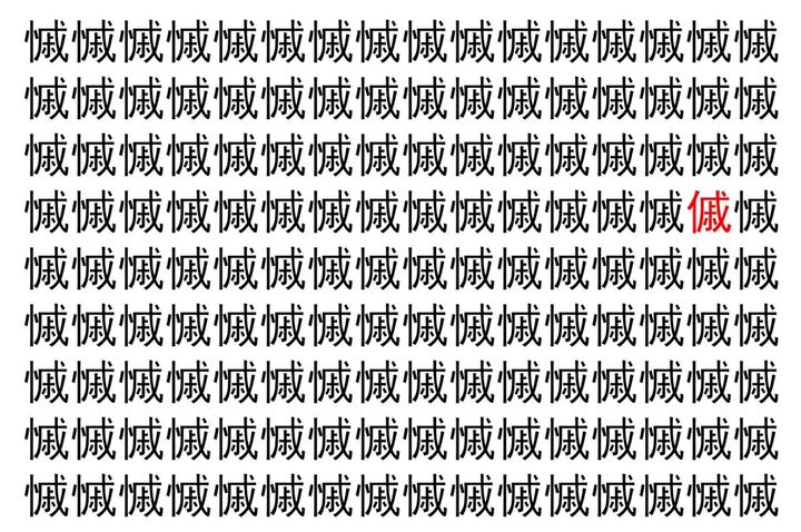 画像の中には、「慽」という漢字が縦に9行、横に16個並んでいます。 全部で144個となりますが・・・、そのうち1つは「異なる漢字」となってますよ!!