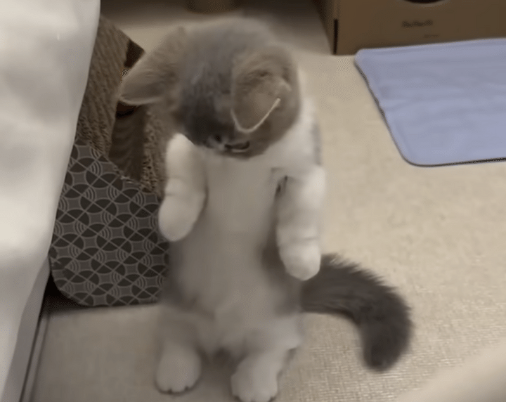 えっと、えっと〜どうしよう! 掃除機を見て戸惑う子猫さん。