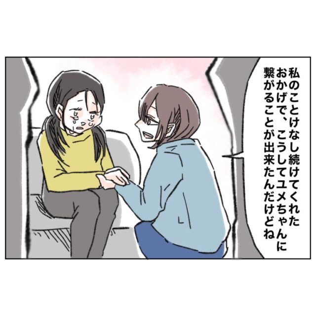 「まあ・・私のことけなし続けてくれたおかげで、こうしてユメちゃんに繋がることが出来たんだけどね」私はユメの手をしっかりと握った。