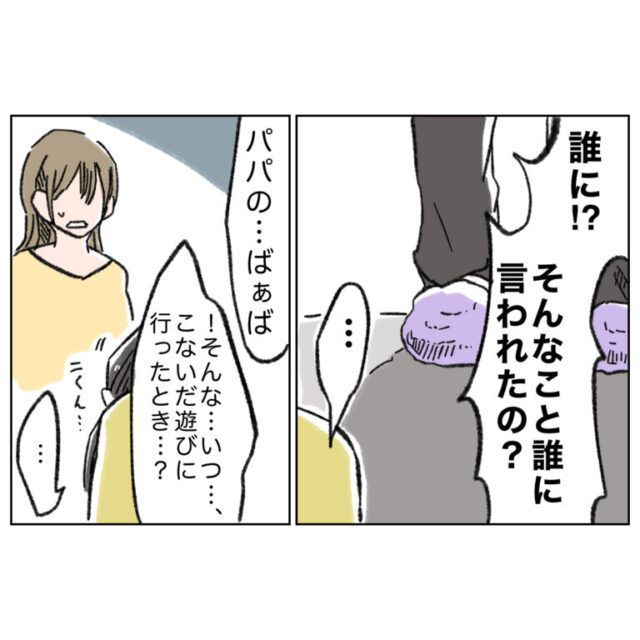 「ユメはパパとママのほんとの子どもじゃないんじゃないかって・・」泣きながらそう言うユメに、「誰に!?そんなこと誰に言われたの?」慌てたお姉ちゃんがたずねると、「パパの・・ばぁば」とユメは言った。お母さん、私に言ってたようなこと、ユメにまで言ってたんだ。「・・!そんな・・いつ・・、この間遊びに行ったとき・・?」お姉ちゃんの質問にユメは静かに頷いた。